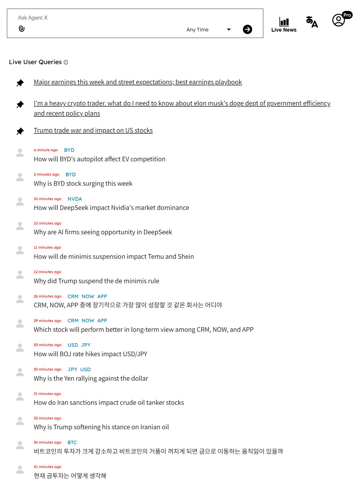 터미널 X 사용해주셔서 감사합니다! 론칭 이후 약 한 달만에 수십만건의 쿼리가 들어왔습니다 (역시 미국주식💸💸💸!) 초기부터 Pro 버전을 써주신 분들께는 프로모션 가격인 월 $30달러를 유지하되, 2/14(금)요일 이후 가입하는 신규 유저들은 정가인 $60달러로 돌아갑니다. 얼리유저 프로모션(50%)을 lock-in하시려면 2/14일 이전까지 가입하시면 됩니다!